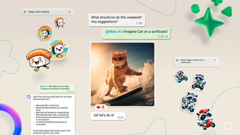 1. Adesivi IA: Sperimenta l’arte di creare adesivi personalizzati che catturano perfettamente il tuo messaggio in chat. Grazie alla tecnologia di punta di Llama 2 e al modello generativo Emu, i tuoi testi si trasformeranno in adesivi unici e di alta qualità in un battibaleno. Inizialmente, questa feature sarà disponibile solo in inglese su WhatsApp, Instagram e nelle Storie di Facebook.